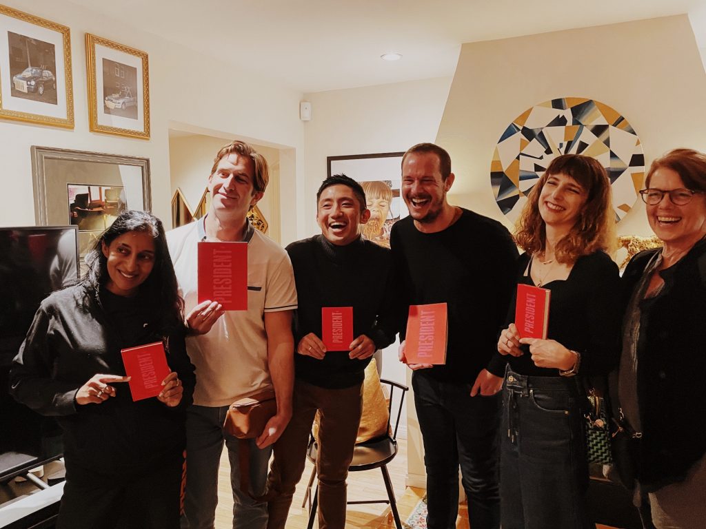 On 5 December, we launched the Collectable Pocket Hardback edition of The President in LA where the novel’s author Xander Beattie had a cosy (literal!) fireside chat with the marvellous poet and writer Steven Tagle (we’ll link to an edit of the convo between the two when it’s published). There was much conviviality (and pizza!) to be had.